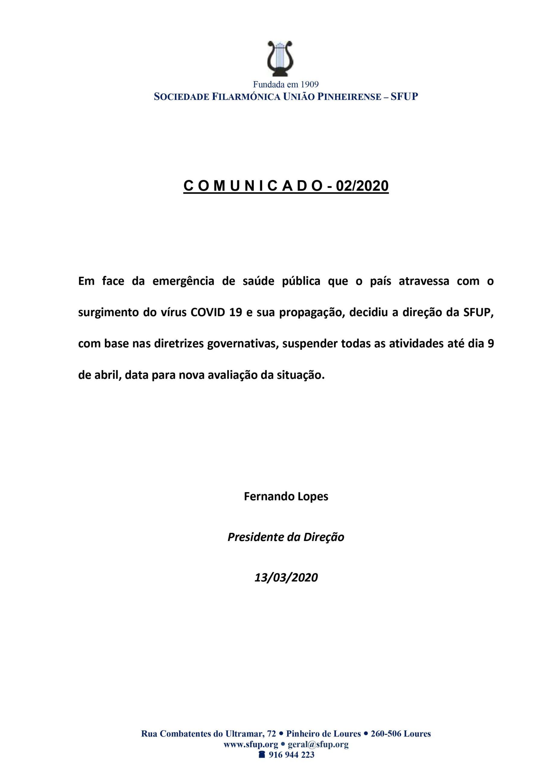 Em face da emergência de saúde pública que o país atravessa com o surgimento do novo vírus COVID-19 e sua propagação, decidiu a direção da SFUP, com base nas diretrizes […]